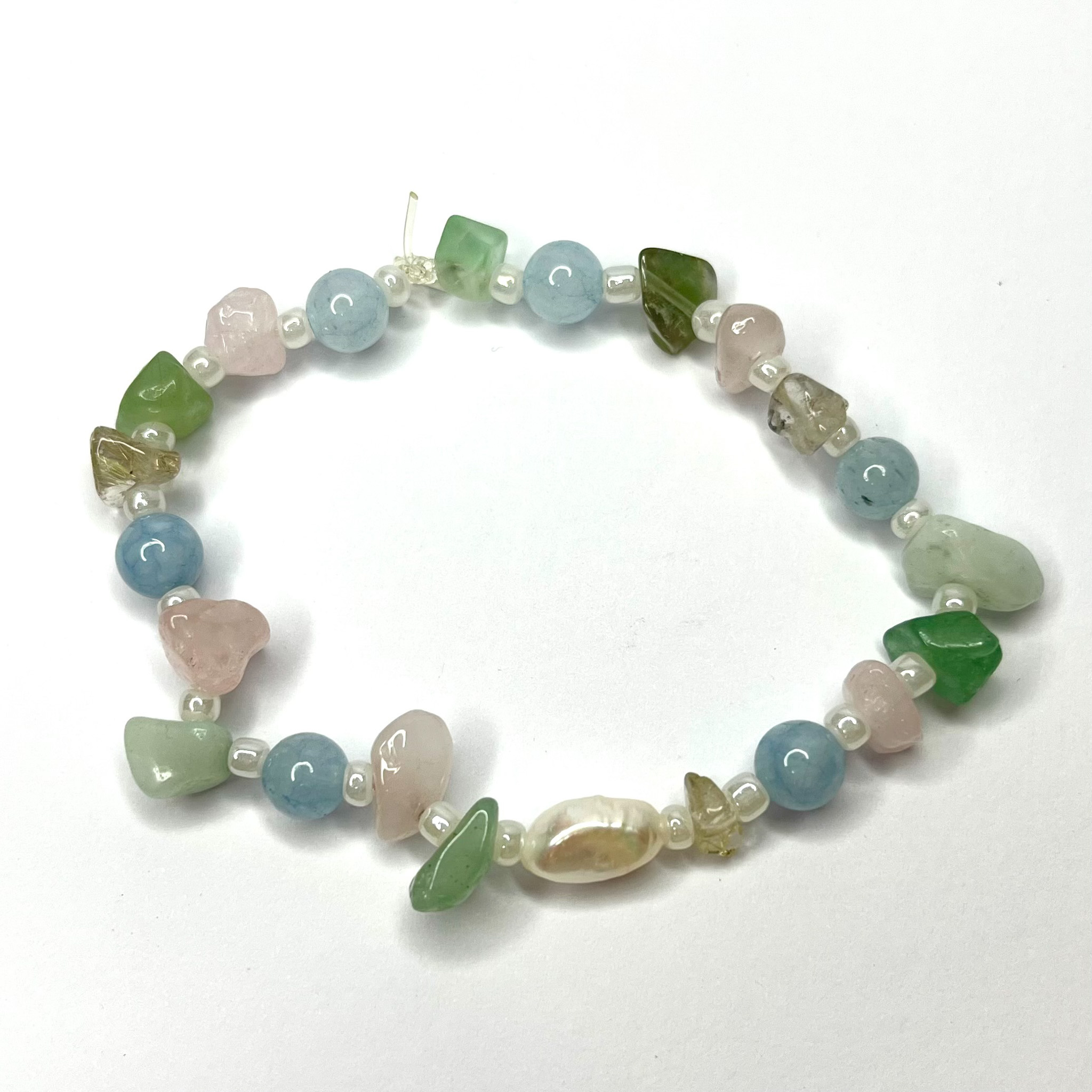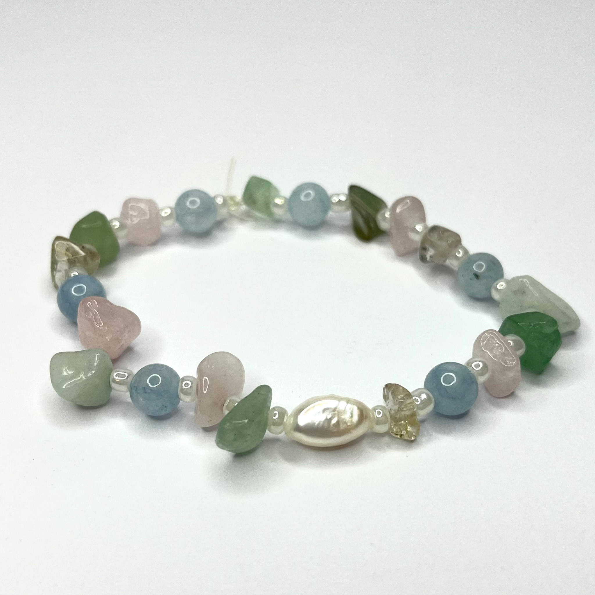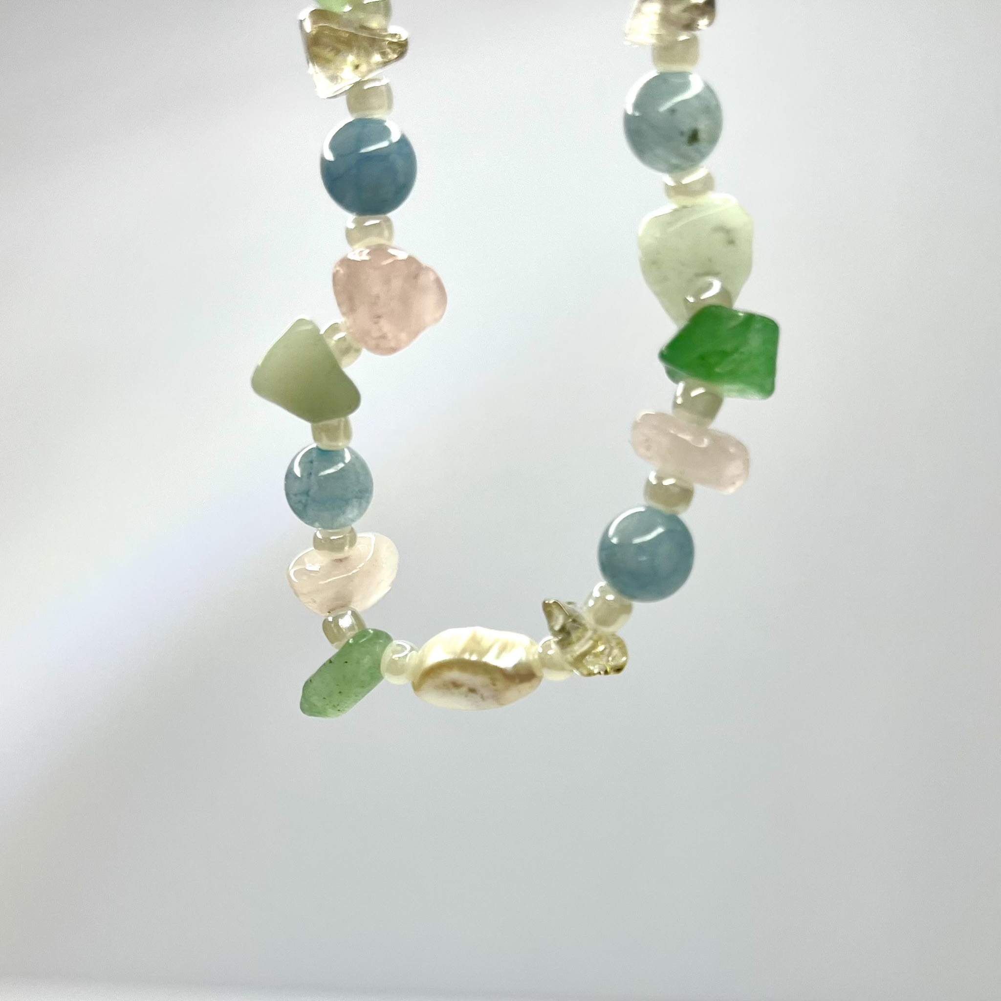 · Perla de Río, Cuarzo Rosa – Jade – Citrino – Ágata Celeste.